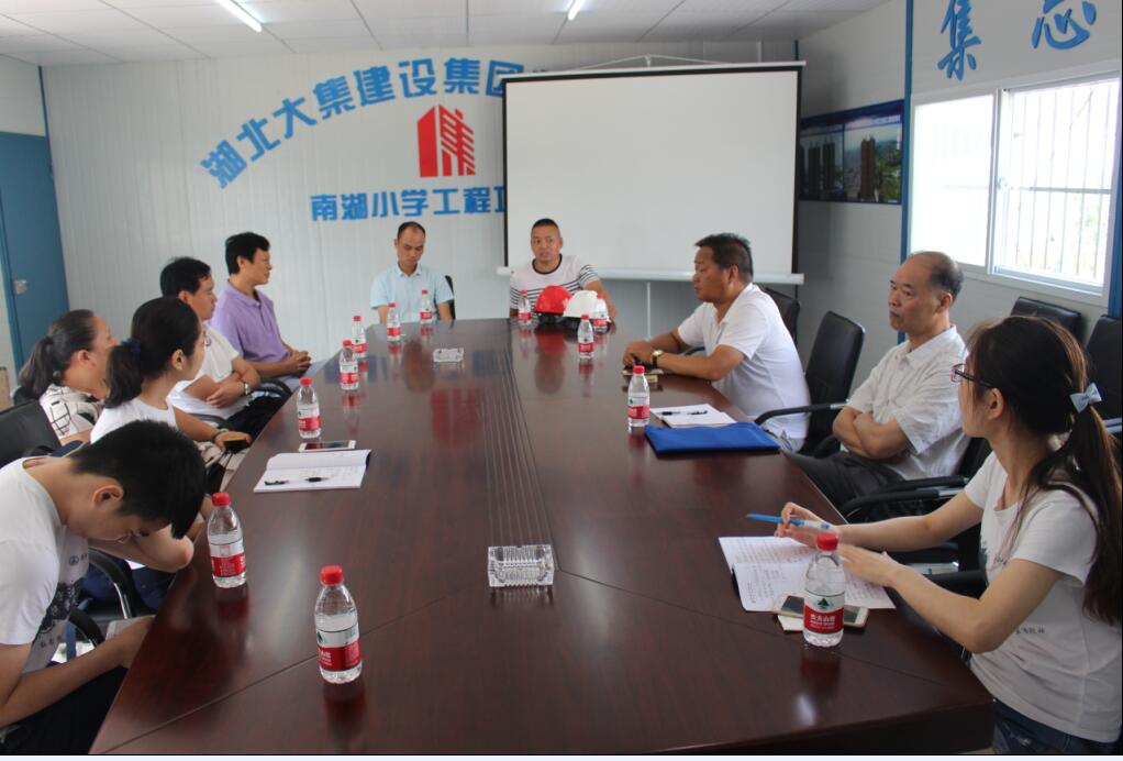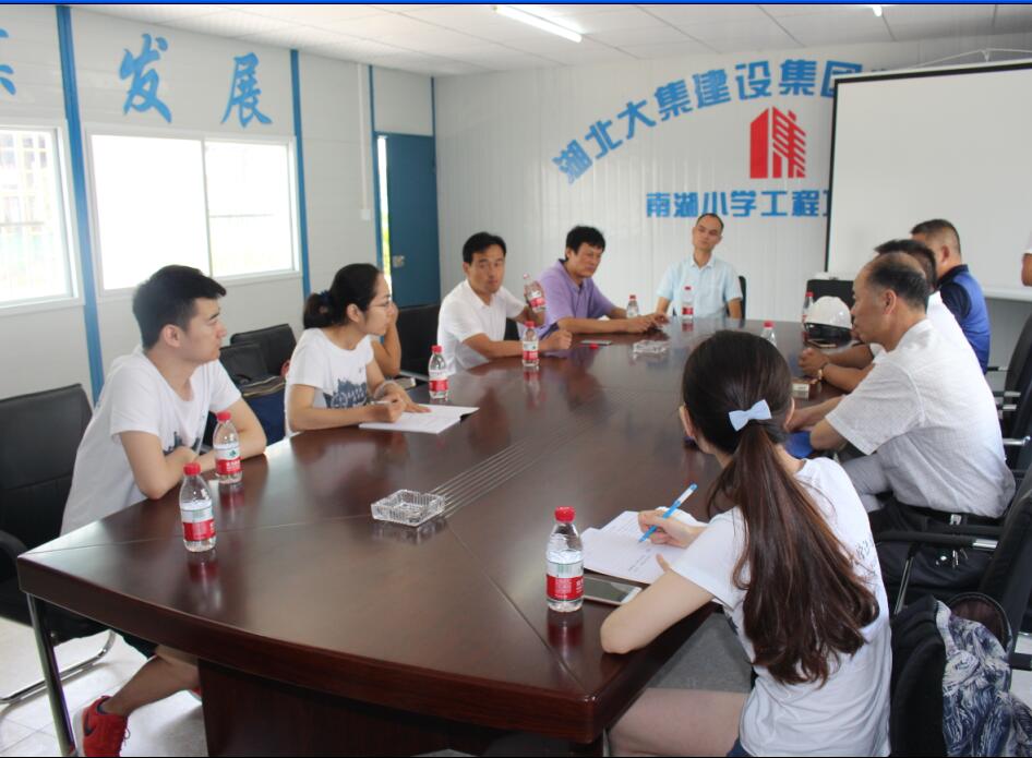 大集街工會主席劉浩首先對調(diào)研組走進大集街表示熱烈歡迎,也對省工會聯(lián)合學(xué)校團體組織的此類公益活動表示大力支持,同時也解釋了選擇南湖小學(xué)項目作為調(diào)研對象的原因,對湖北大集建設(shè)集團一路走來的不斷成長和完善發(fā)展表示肯定,對大集建設(shè)集團高標(biāo)準(zhǔn)的項目建設(shè)和規(guī)范化的用工制度表示嘉獎!