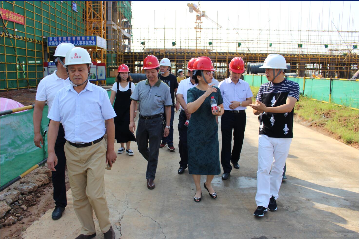 各級(jí)領(lǐng)導(dǎo)充分肯定了施工現(xiàn)場(chǎng)的標(biāo)準(zhǔn)化管理,詳細(xì)了解了該項(xiàng)目的基本情況和施工進(jìn)度,并結(jié)合施工效果圖對(duì)在建的教學(xué)樓、體育場(chǎng)等施工現(xiàn)場(chǎng)進(jìn)行考察督導(dǎo)。蔡甸區(qū)人大張主任親切地詢問(wèn)了當(dāng)前施工過(guò)程中是否存在需要政府協(xié)調(diào)解決的困難,現(xiàn)場(chǎng)囑咐各級(jí)領(lǐng)導(dǎo)要積極協(xié)助給予支持,確保項(xiàng)目按期完成建設(shè)目標(biāo),為明年即將入學(xué)的廣大師生交上一份滿意的答卷!