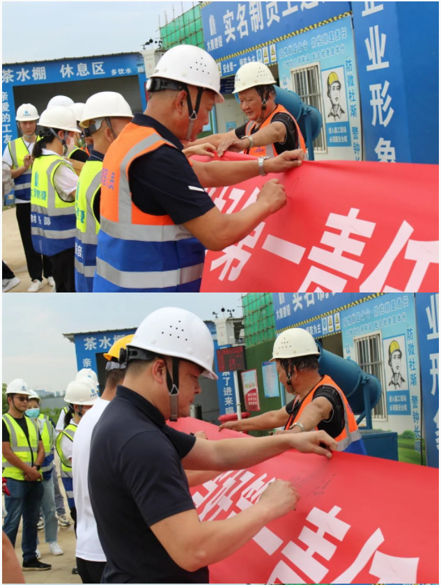 活動(dòng)開始,集團(tuán)董事長徐濤、副總經(jīng)理徐家富及各部門負(fù)責(zé)人、各項(xiàng)目經(jīng)理率先在“遵守安全生產(chǎn)法,當(dāng)好第一責(zé)任人”條幅上鄭重簽名,寫下對(duì)肩負(fù)安全生產(chǎn)責(zé)任的承諾,隨后各項(xiàng)目施工員、安全員紛紛在條幅上寫下自己的名字,表達(dá)對(duì)做好安全生產(chǎn)相關(guān)工作的信心和決心。