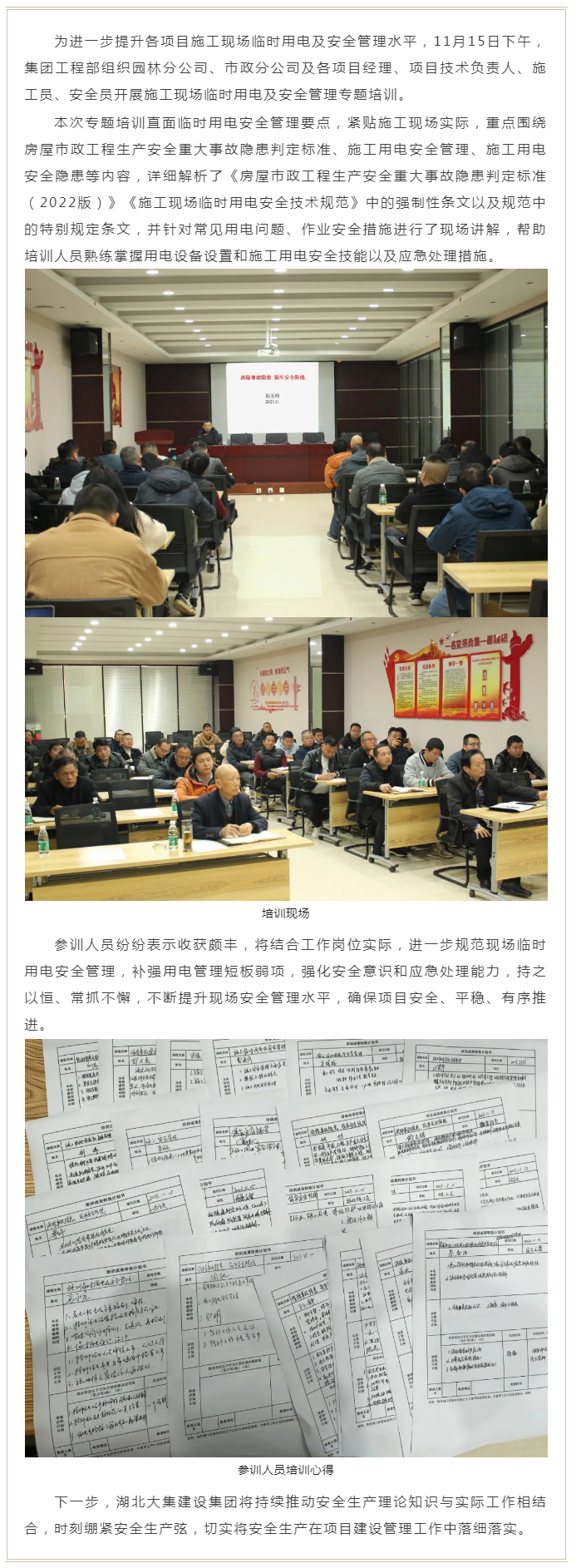 集團公司開展施工現(xiàn)場臨時用電及安全管理專題培訓(xùn)