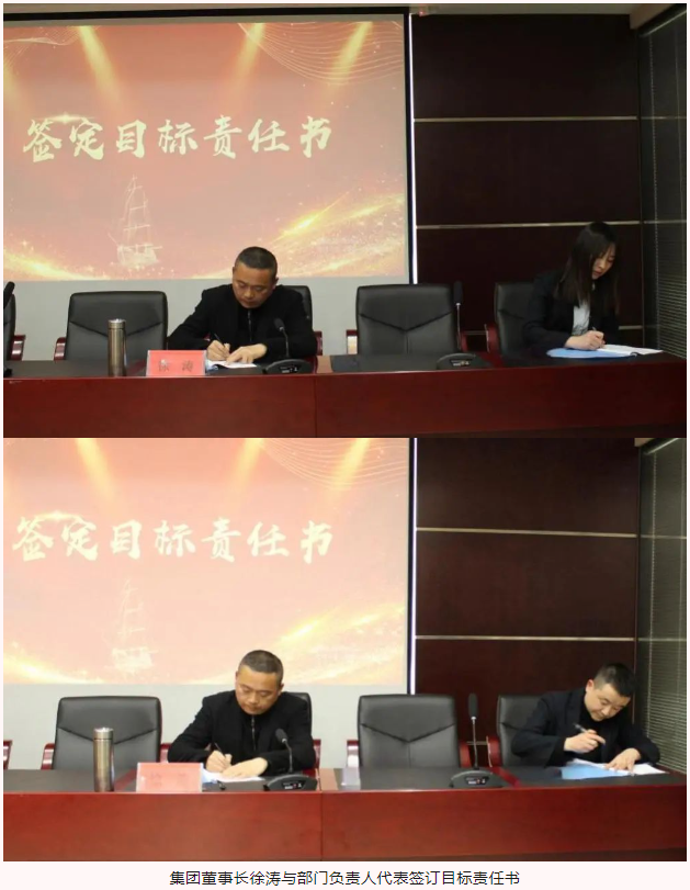 在2024年目標責任書簽訂儀式上,集團董事長、總經理、副總經理依次與部門負責人代表、項目代表簽訂目標責任書。責任書不僅僅是一紙文件,它承載著集團的期望與信任,代表著責任與擔當,猶如千鈞之重。