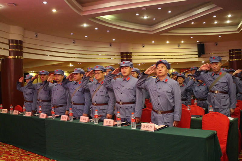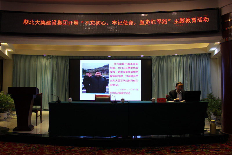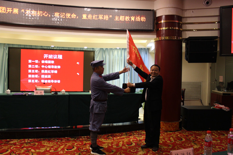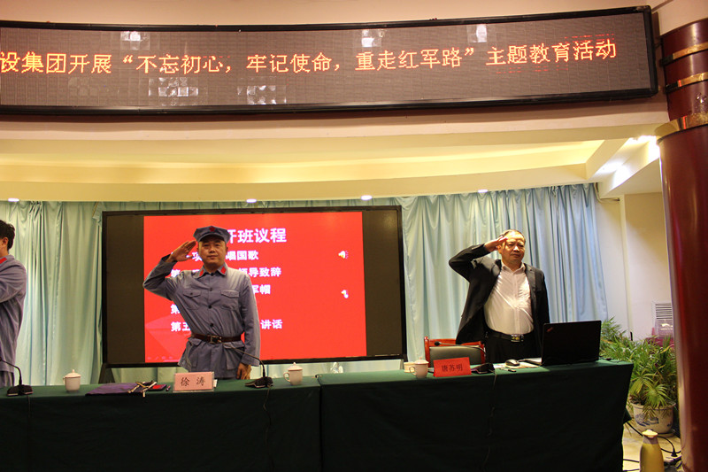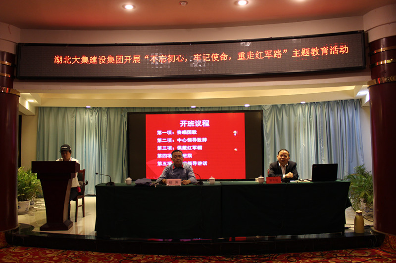 在雄壯的國歌聲中,湖北大集建設集團“不忘初心,牢記使命,重走紅軍路”主題教育活動開班儀式正式拉開帷幕。