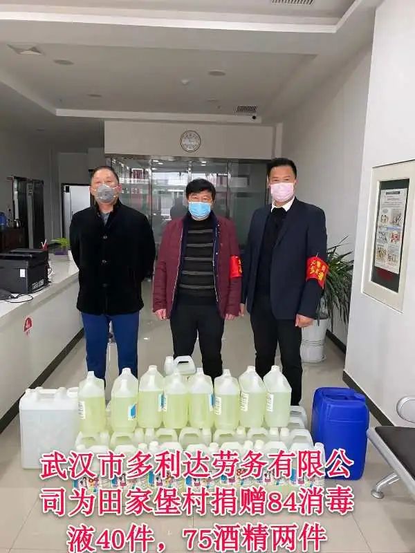 2、疫情形勢嚴峻,三位周總想法設法籌備40件84消毒液、兩大件酒精捐給田家堡村,采買300斤84消毒液捐贈給曙光村,用于支援抗疫工作;
