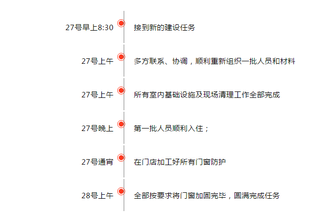 本批任務(wù)時間更緊,挑戰(zhàn)更大,因為當(dāng)天晚上,第一批使用人員便要入住方艙,這意味著,留給我們的施工時間只有僅僅不到一天!