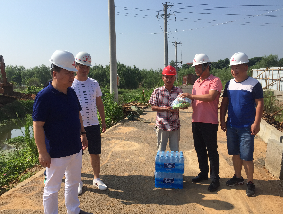 時下正值三伏天,暑氣逼人,持續(xù)高溫給施工現(xiàn)場一線的員工帶來了嚴(yán)峻的考驗,為確保安全生產(chǎn)以及一線人員的人身安全和身體健康,公司總經(jīng)理徐遠(yuǎn)征、副總經(jīng)理徐家富領(lǐng)導(dǎo)班子及工程管理部和項目經(jīng)理們組成慰問組前往各施工現(xiàn)場精心開展“情系一線,夏送清涼”的慰問活動,深入到公司污水泵站項目部、盟盛項目部、外環(huán)路、常貴路、常貴南路項目部、仟島項目部、南湖五期項目部、世茂項目部等施工現(xiàn)場,為奮戰(zhàn)在一線的員工送去了防暑降溫用品,把清涼送到員工們的心坎上。