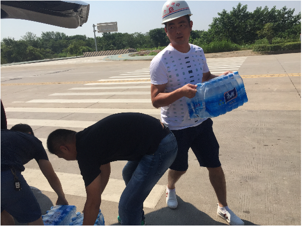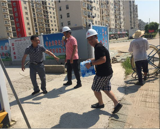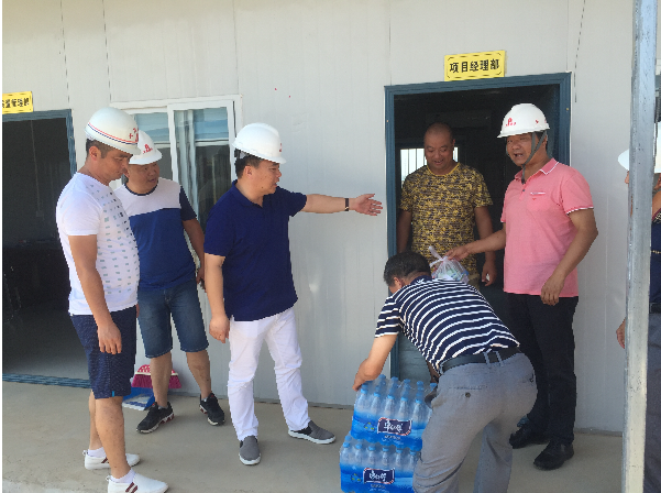 “現(xiàn)在天氣炎熱,大家要注意高溫施工安全,做好防暑降溫工作!”每到一處,公司總經(jīng)理和副總就耐心跟施工現(xiàn)場人員叮囑一番,同時要求相關(guān)負(fù)責(zé)人千方百計做好員工的后勤保障工作,加強(qiáng)對飲用水、食品和工地食堂衛(wèi)生管理,確保一線人員身體健康。慰問組人員親手把礦泉水、藥品等防暑降溫用品送到施工現(xiàn)場人員手上,施工現(xiàn)場負(fù)責(zé)人一致表示,將按照集團(tuán)公司領(lǐng)導(dǎo)的要求,認(rèn)真做好施工現(xiàn)場防暑降溫工作和安全生產(chǎn)工作,保證工程各項工作的順利開展。