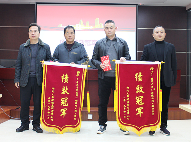 會議開始,行政部公布集團公司2019年第三四季度項目績效考核結(jié)果,并由集團董事長徐濤、總經(jīng)理徐遠征為第三四季度項目績效冠軍頒發(fā)錦旗和獎金。
